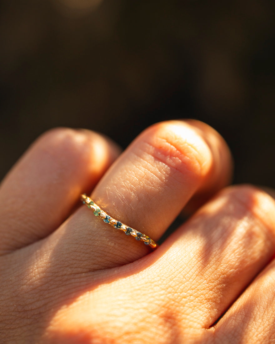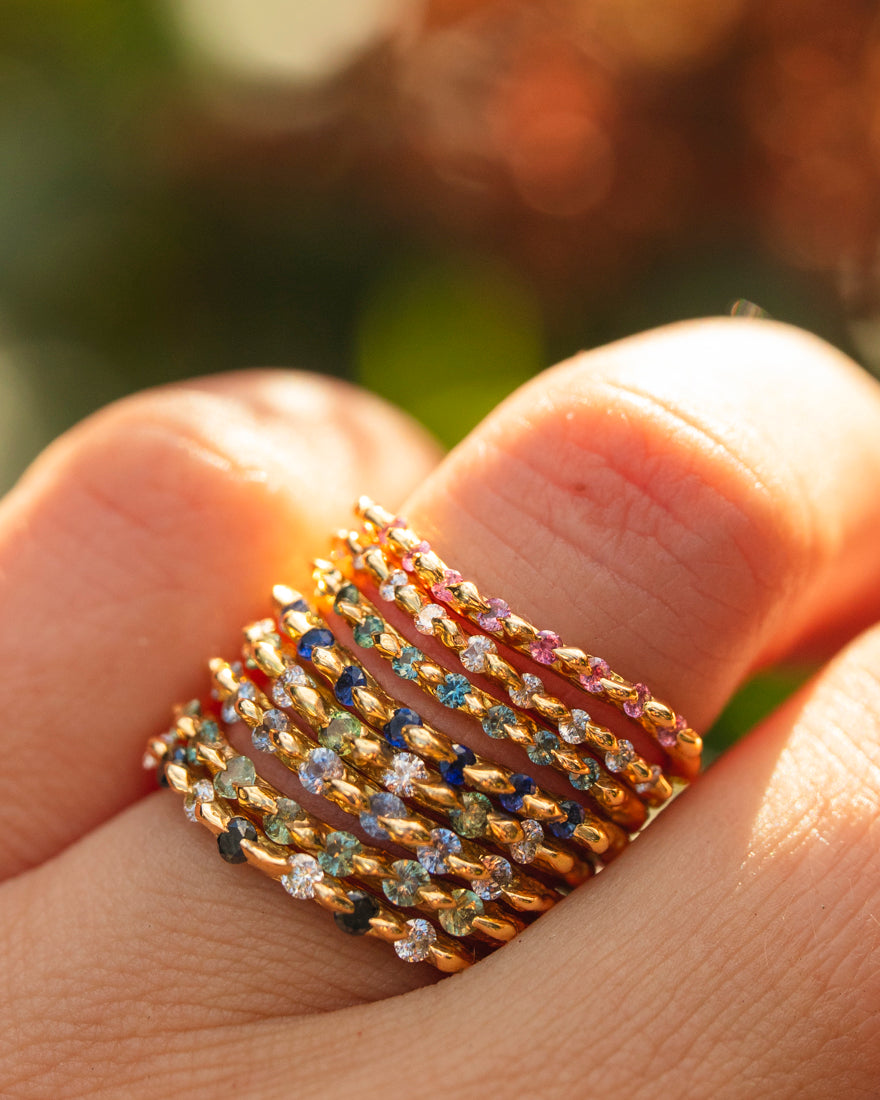 Make this ring personal by choosing diamonds or sapphires in your favorite color. Please get in touch to design your own version of this ring. If you can't find the color you want in the dropdown menu please get in touch to go over all available options.