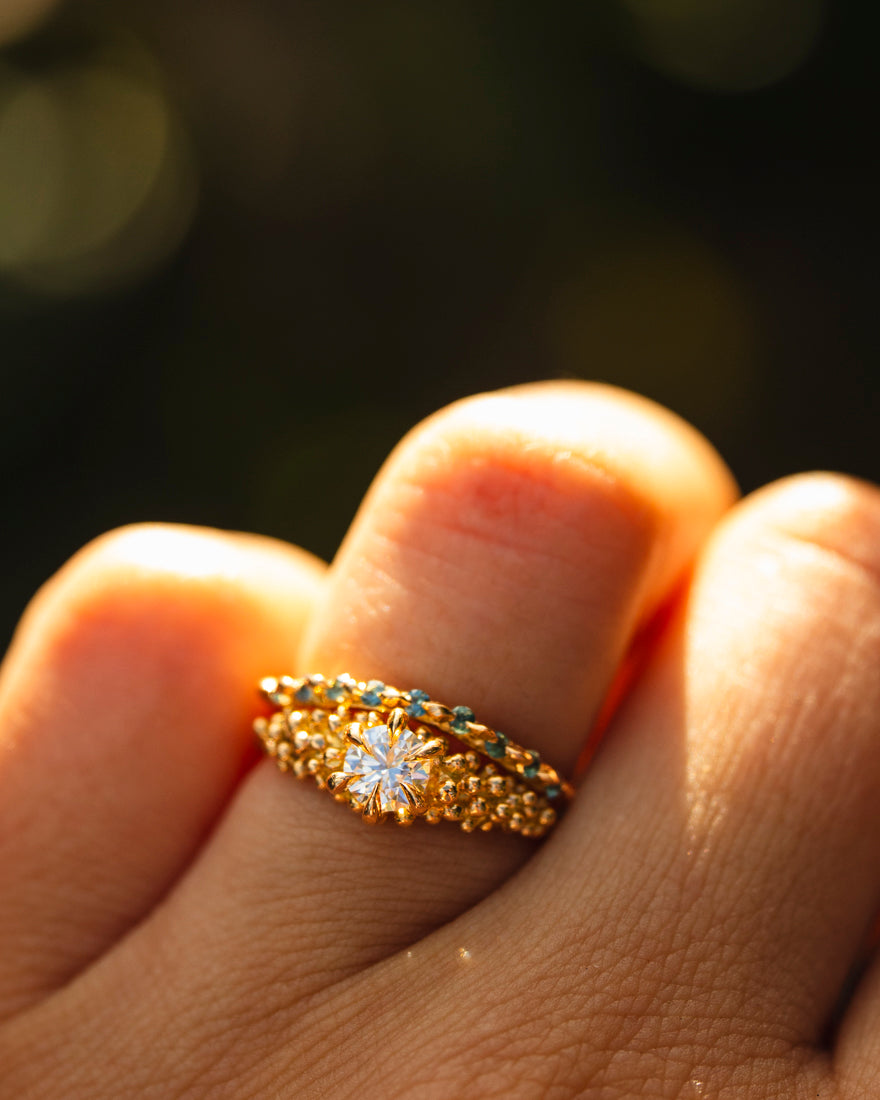 Every ring is unique, and made upon order in my workshop in Sweden, with recycled gold and ethically sourced gemstones.