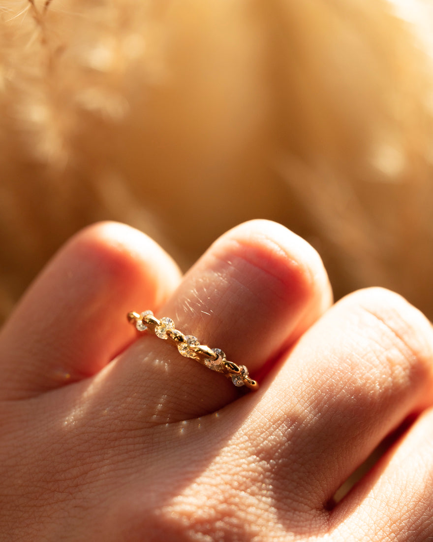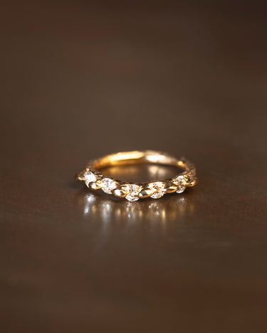 Curved diamond ring with cast in place brilliant cut diamonds, made in 18K Yellow Gold. The diamonds are cast in place in my drop set style.