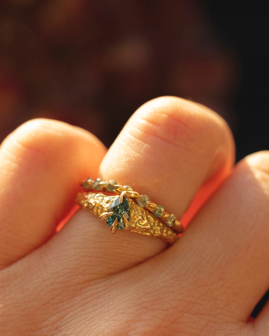 Every ring is unique, and made upon order in my workshop in Sweden, with recycled gold and ethically sourced gemstones.