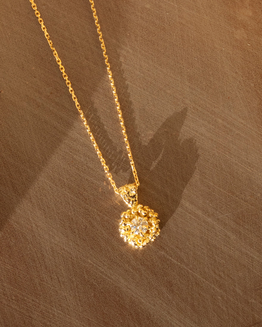 Every pendant is unique, and handmade in my workshop in Sweden with 100% recycled gold and sustainable sourced gemstones.