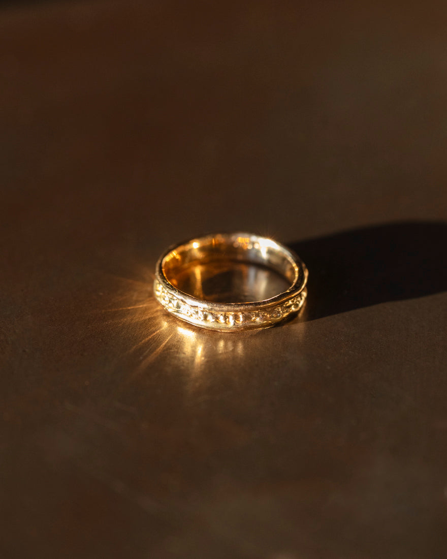 My unisex/men's Lava ring. This ring is made in our popular texture, lava. It has a lower surface in the center of the ring with rounded soft edges that stands up a little bit higher than the center part. Thanks to the soft edges this ring is very comfortable.