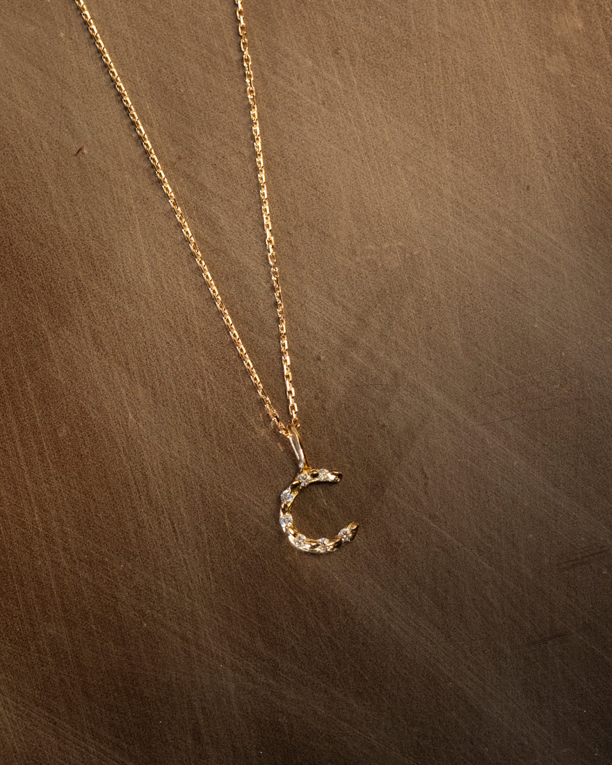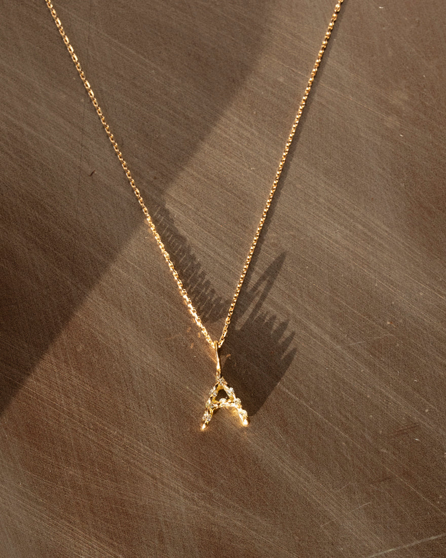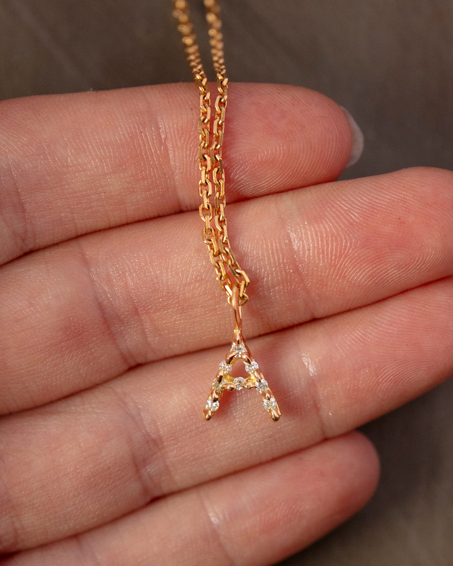 Handmade letter with cast in place brilliant cut diamonds. Made in 18k yellow gold.