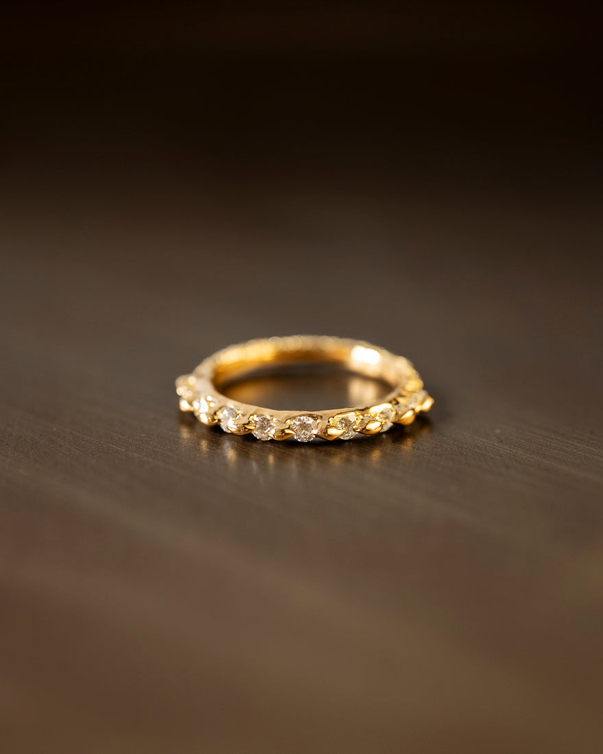 Thin diamond ring with cast in place brilliant cut diamonds, made in 18K Yellow Gold.
