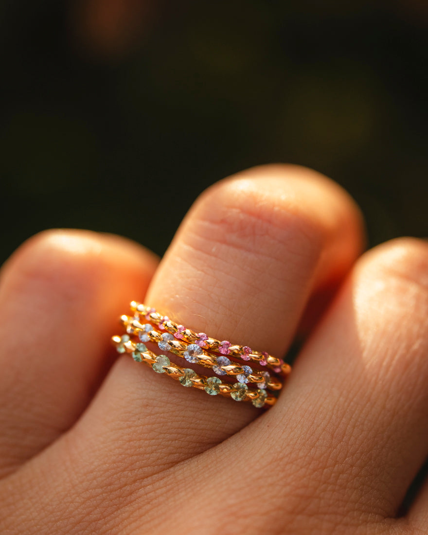 Make this ring personal by choosing diamonds or sapphires in your favorite color. Please get in touch to design your own version of this ring. If you can't find the color you want in the dropdown menu please get in touch to go over all available options.