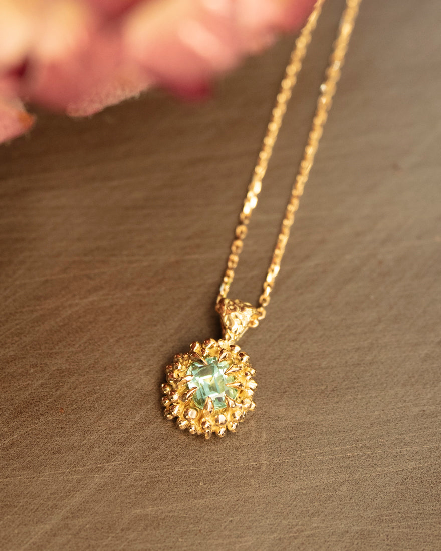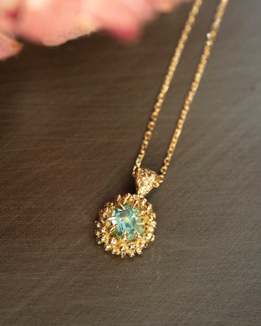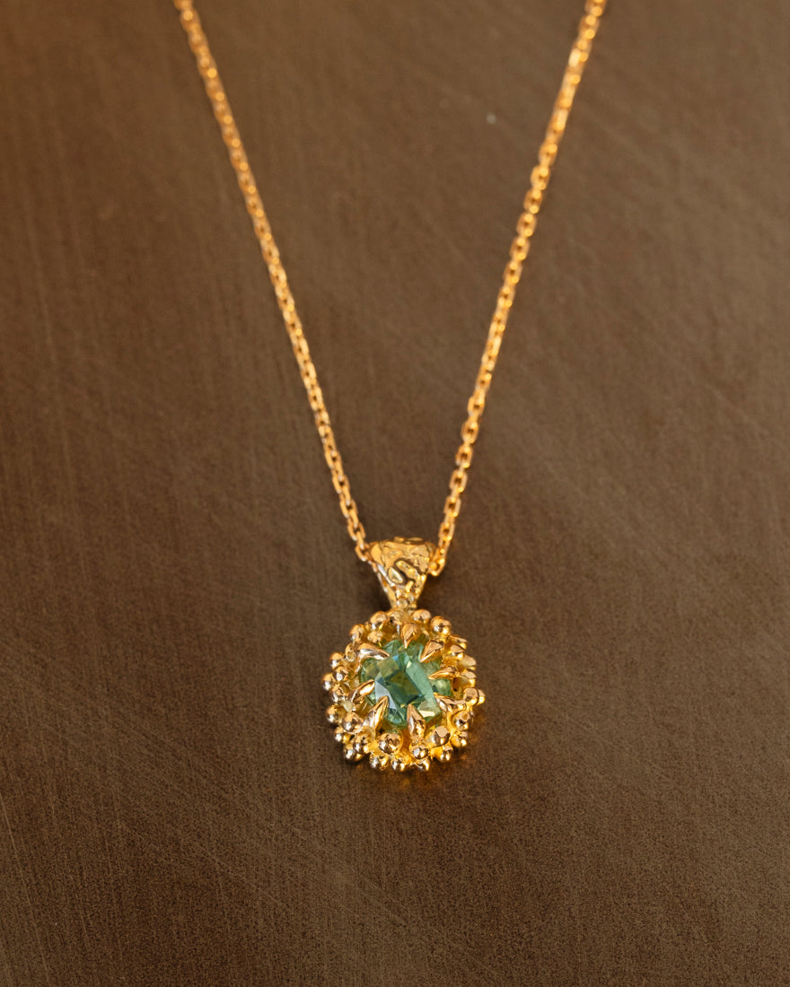 Every pendant is unique, and handmade in my workshop in Sweden with 100% recycled gold and sustainable sourced gemstones.
